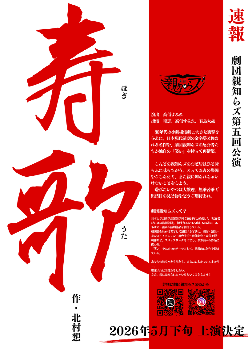 速報!第5回公演「寿歌」5月下旬上演決定!